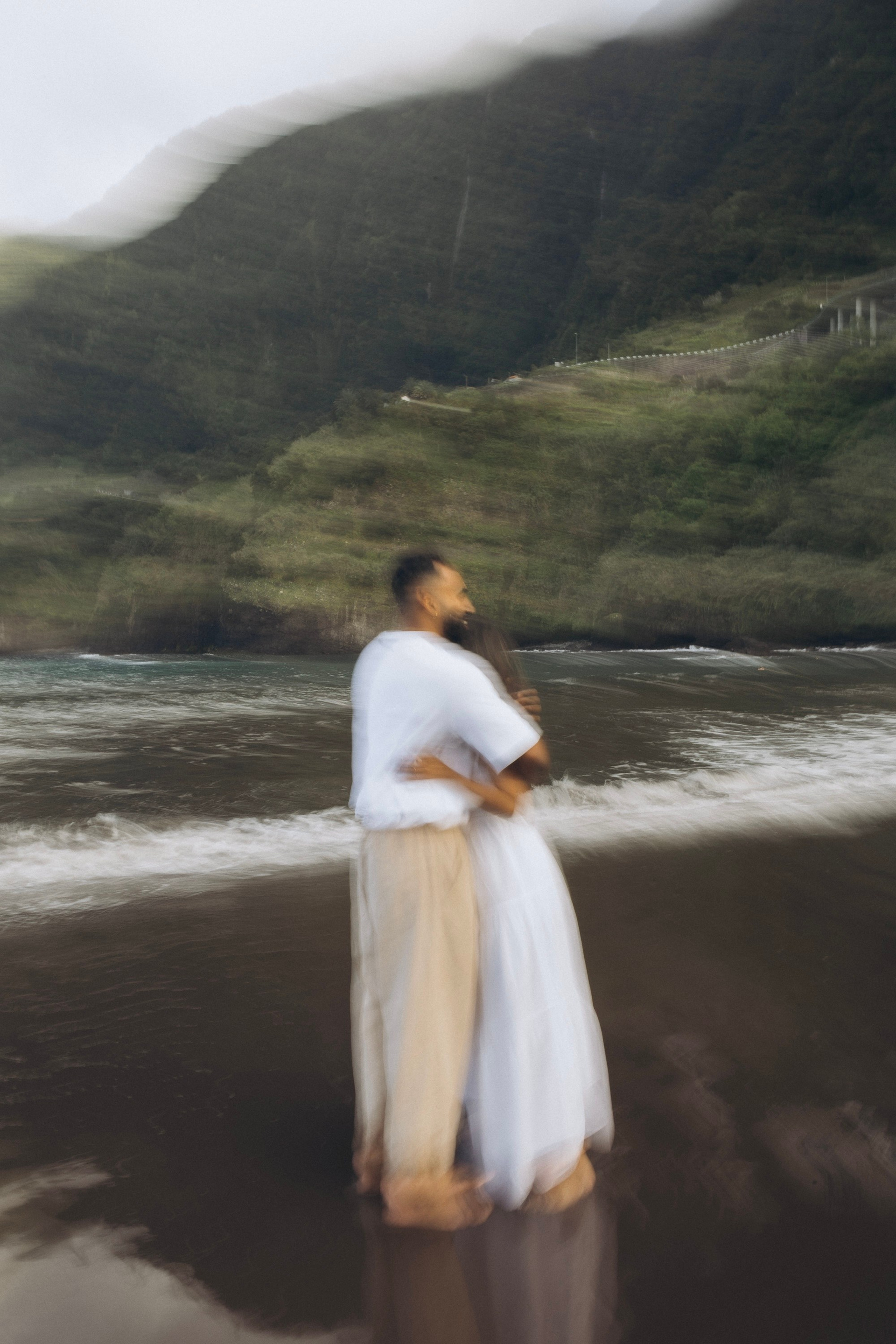 Romantic proposal on Seixal black sand beach